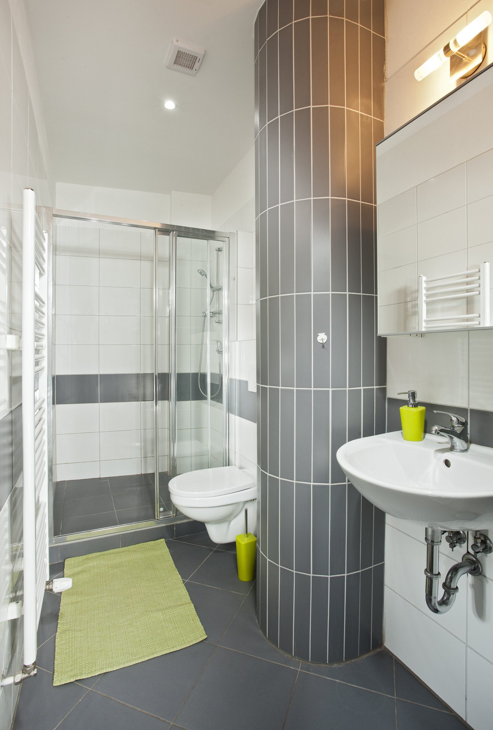 V apartmánu je koupelna spojená s toaletou. Koupelna je zařízena sprchovým koutem.
