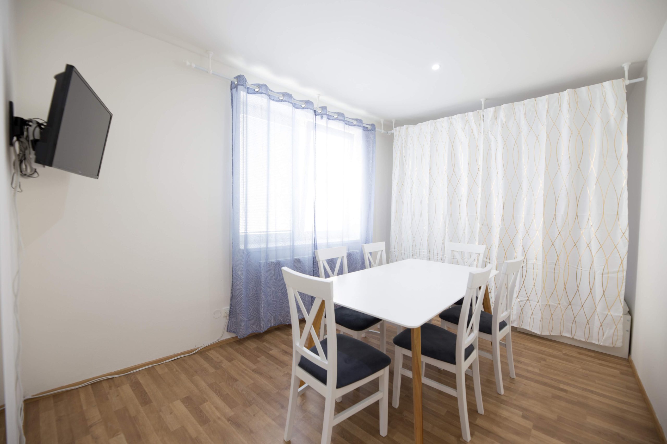 V obývacím pokoji je k dispozici rozkládací pohovka. V obývacím pokoji je pro hosty připraven k posezení stůl  pro čtyři lidi a televize.