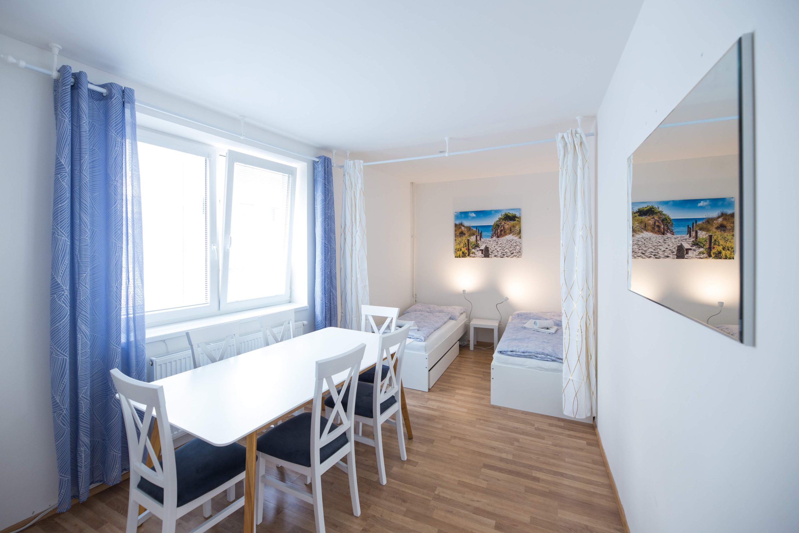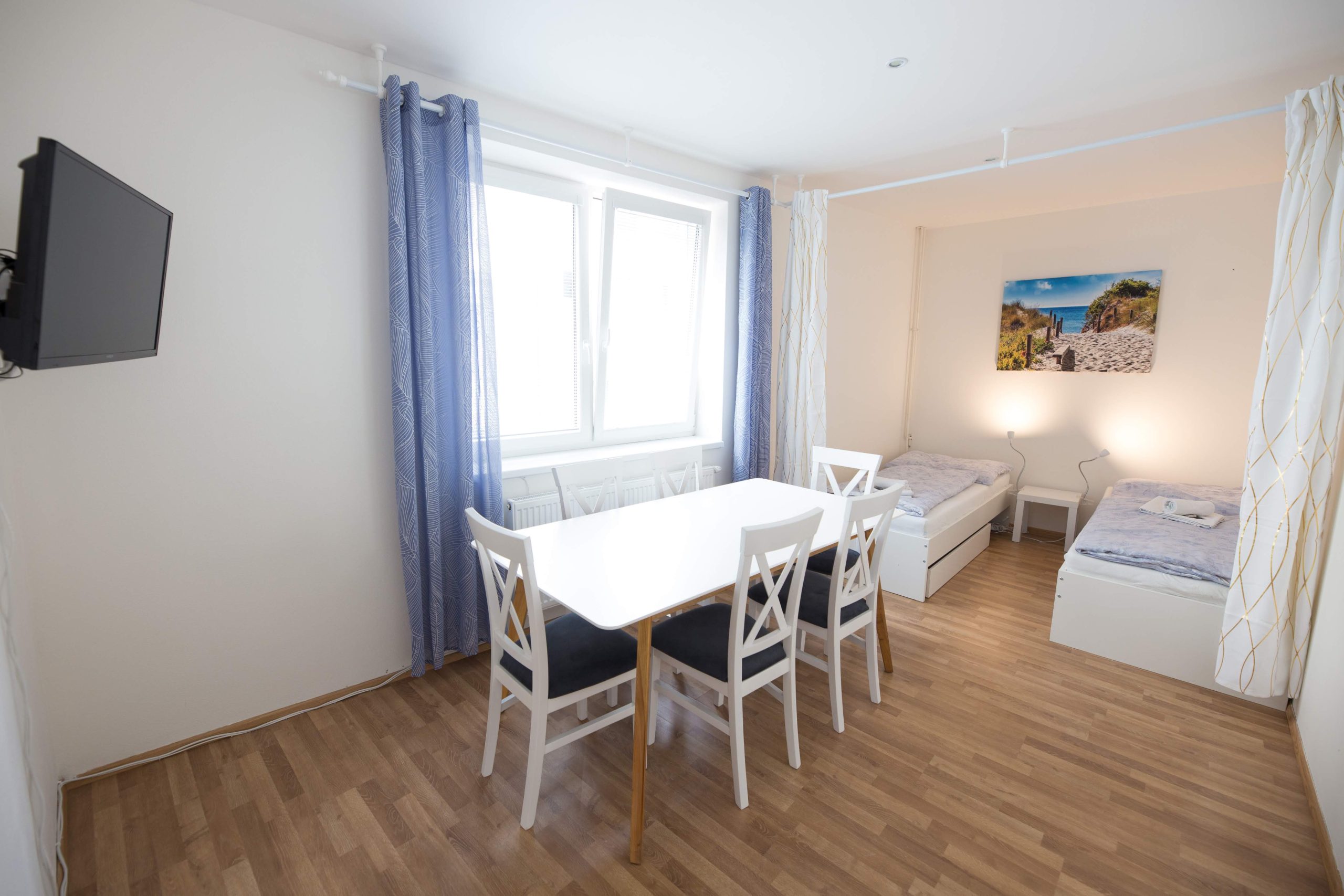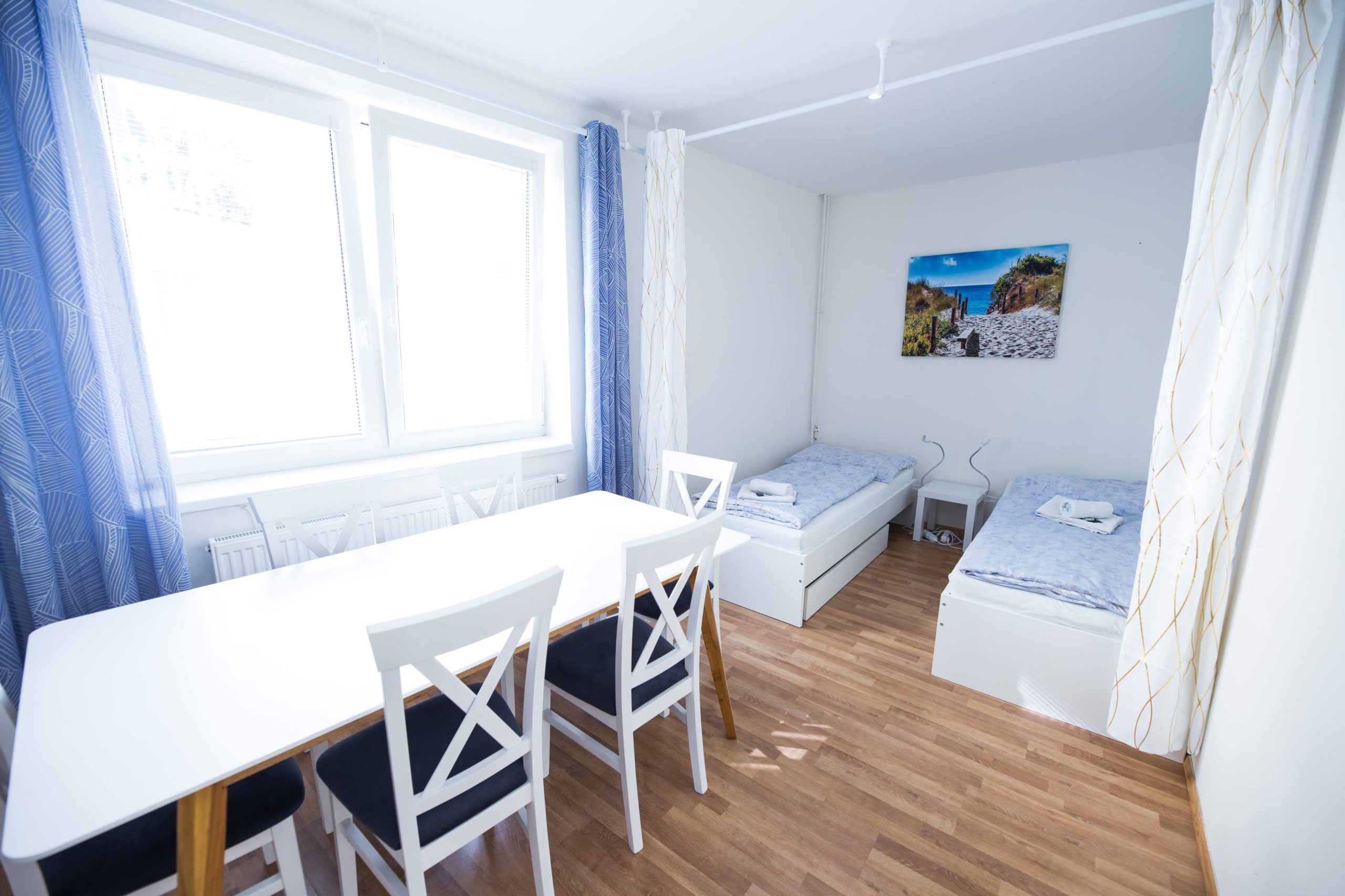 Prostorný byt se skládá z jedné ložnice a obývacího pokoje. Díky své variabilnosti je apartmán vhodný jak pro skupinu přátel, rodinu, tak pro firemní zaměstnance na služební cestě. Samozřejmostí je vybavenost ložním prádlem, ručníky, šampóny a hotelovým mýdlem.